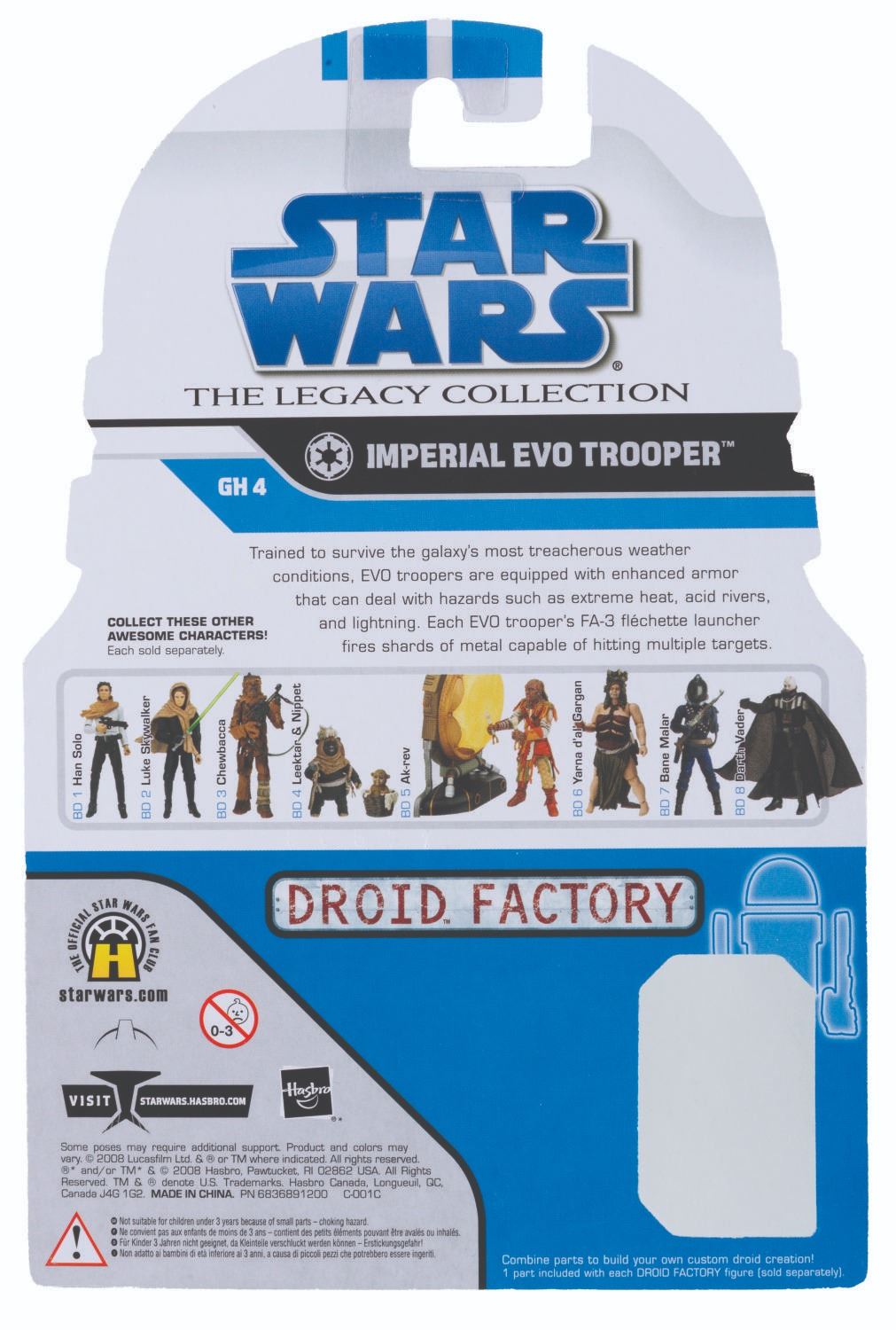 (Hasbro, 2008-2009) A collection of 35 Star Wars The Legacy Collection cardbacks, including Luke Skywalker, Han Solo, Darth Vader, and more. Measuring 6" x 9", the cardbacks are in very good condition with light wear.