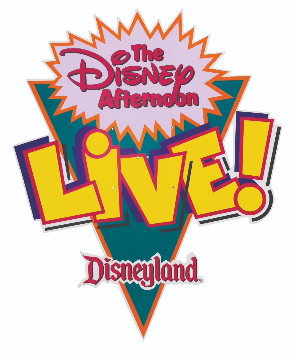 (Disneyland, 1991) A large Disney Afternoon Live! sign displayed at Disneyland. The temporary overlay rethemed areas of Fantasyland to include characters from the hit shows "DuckTales," "TaleSpin," "Chip ’n Dale Rescue Rangers," and "Adventures of the Gummi Bears." Measuring 47.5" x 59", the sign is in very good condition with typical wear from Park use, including scratches, scuffs, stains, and intentional holes from display.