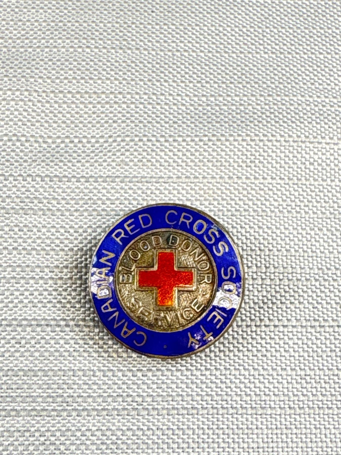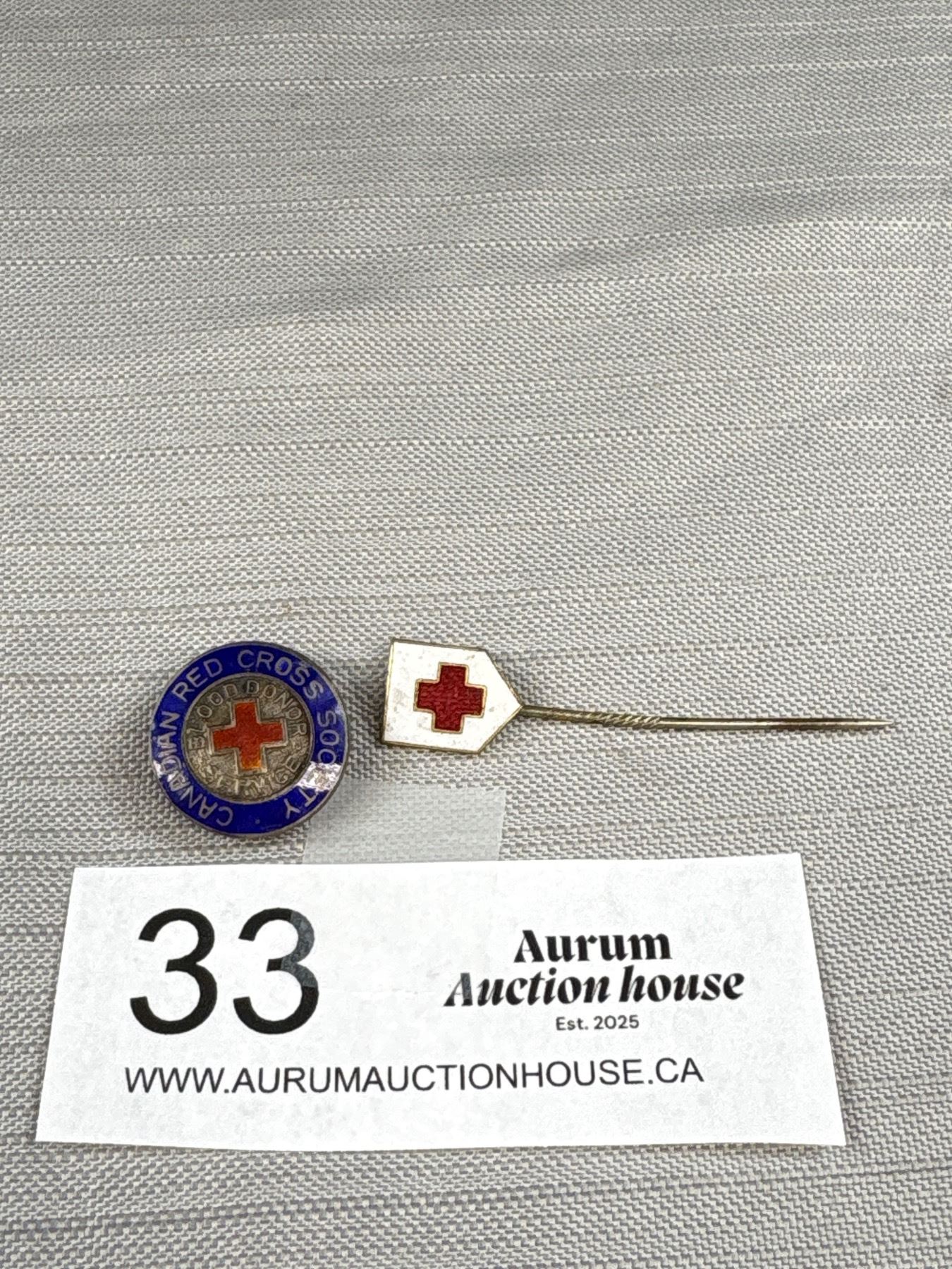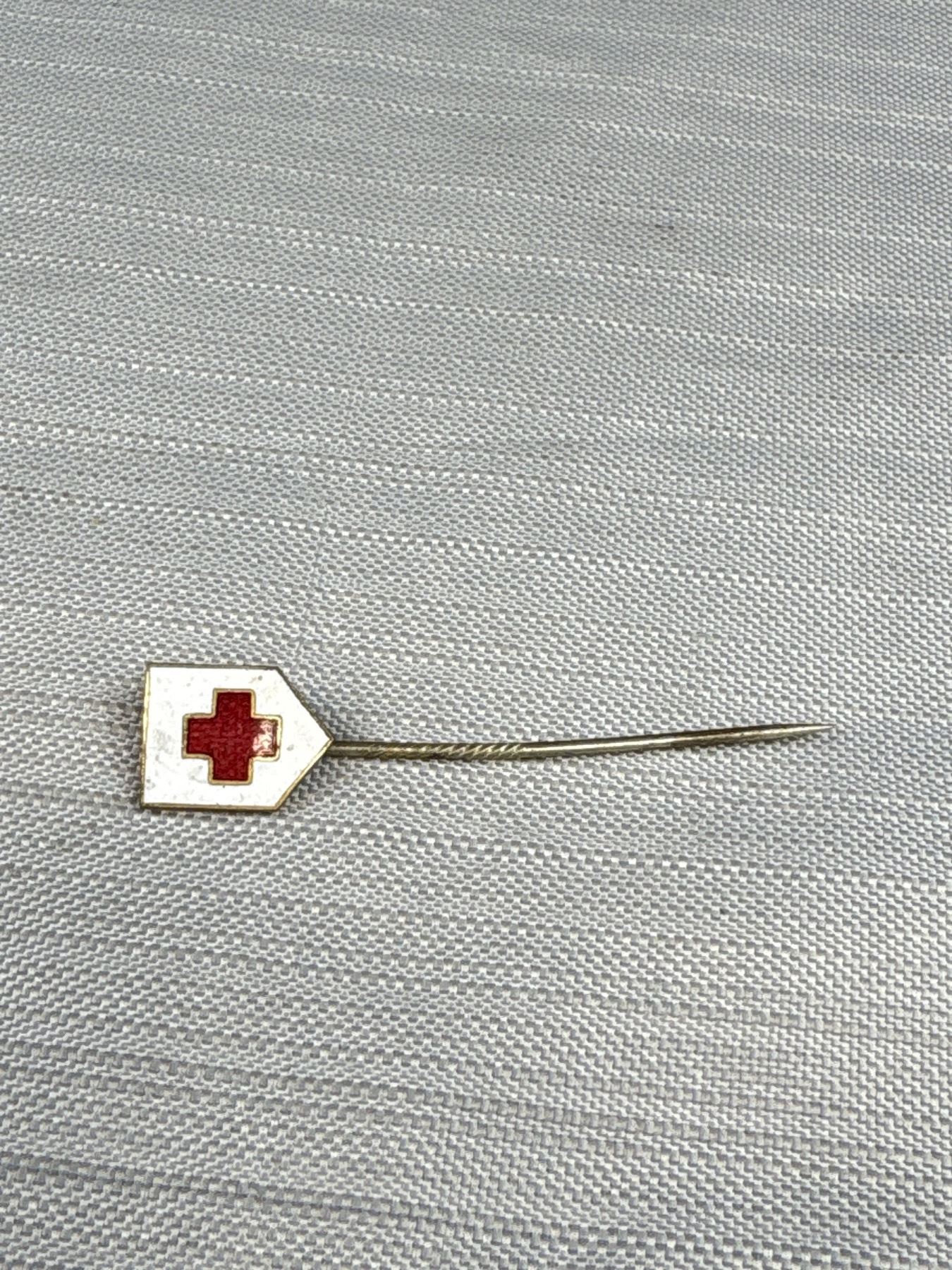 A Large Early Canadian Sterling + Enamel Red Cross Badge + Stick Pin
