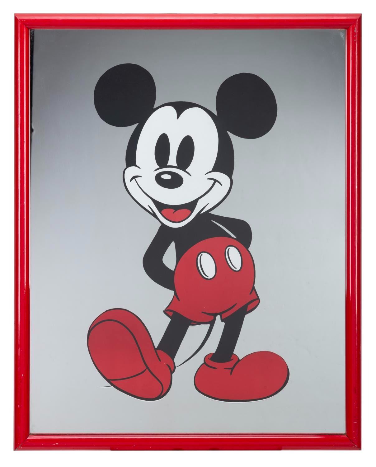 (Disney, 1970s) A mirror with a three color image of Mickey Mouse, in a red frame. Measuring 23.75” x 39.75”, the mirror displays in very good condition with light wear to the frame. This item has special shipping requirements due to size and weight. Please enquire before bidding.