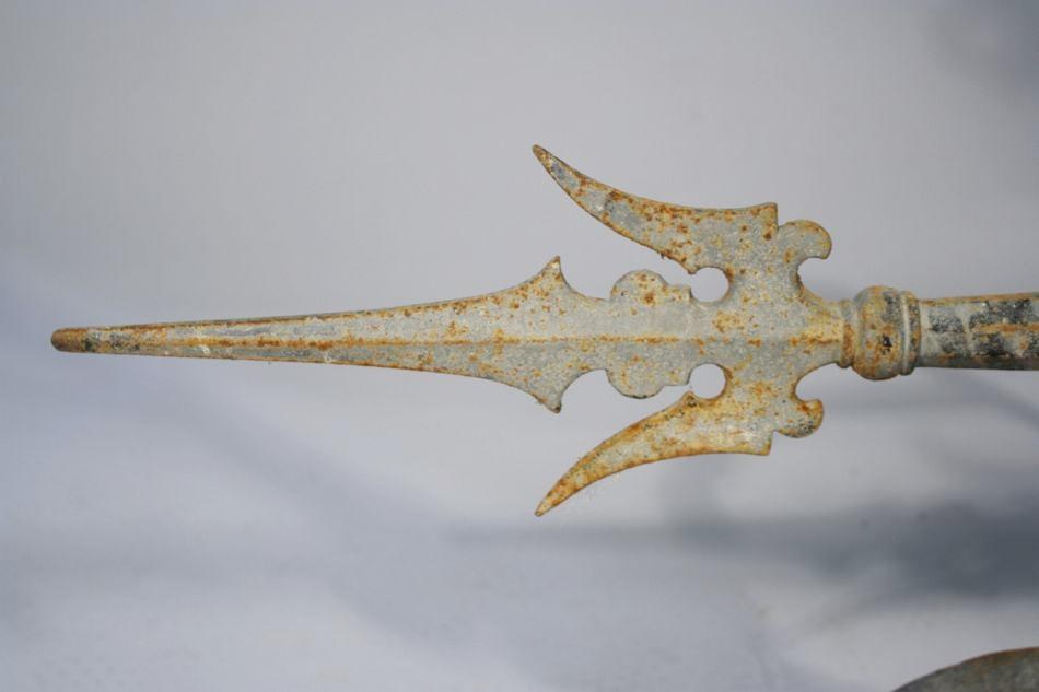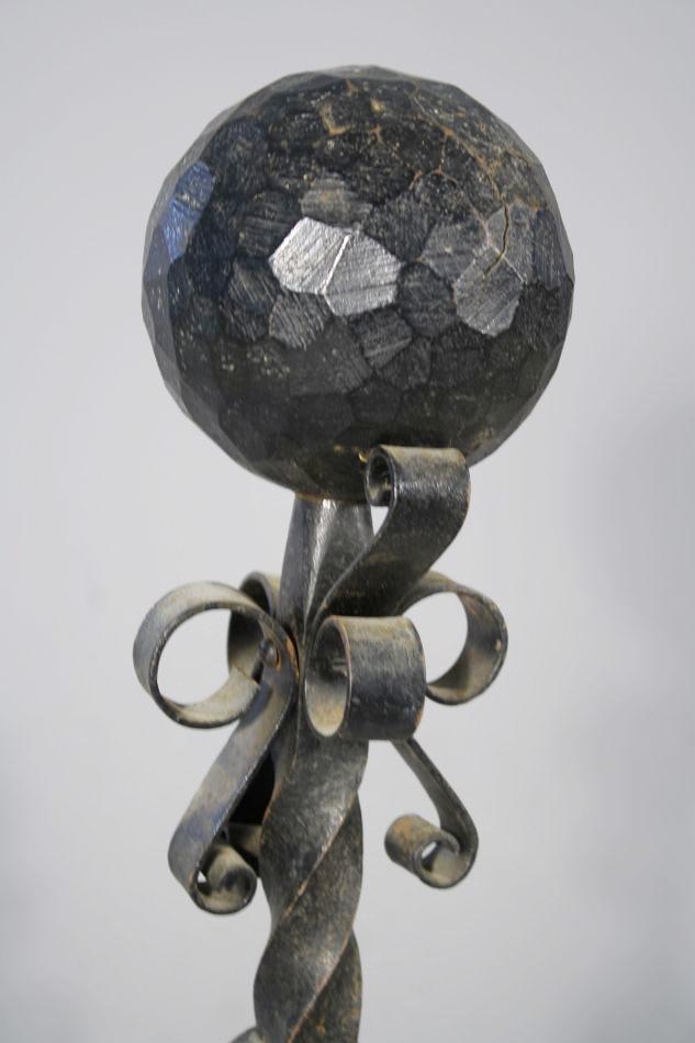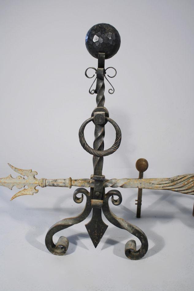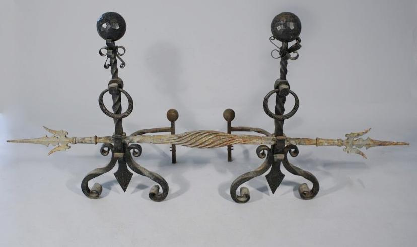 A Large Gothic Revival Wrought Iron Andiron Set.
