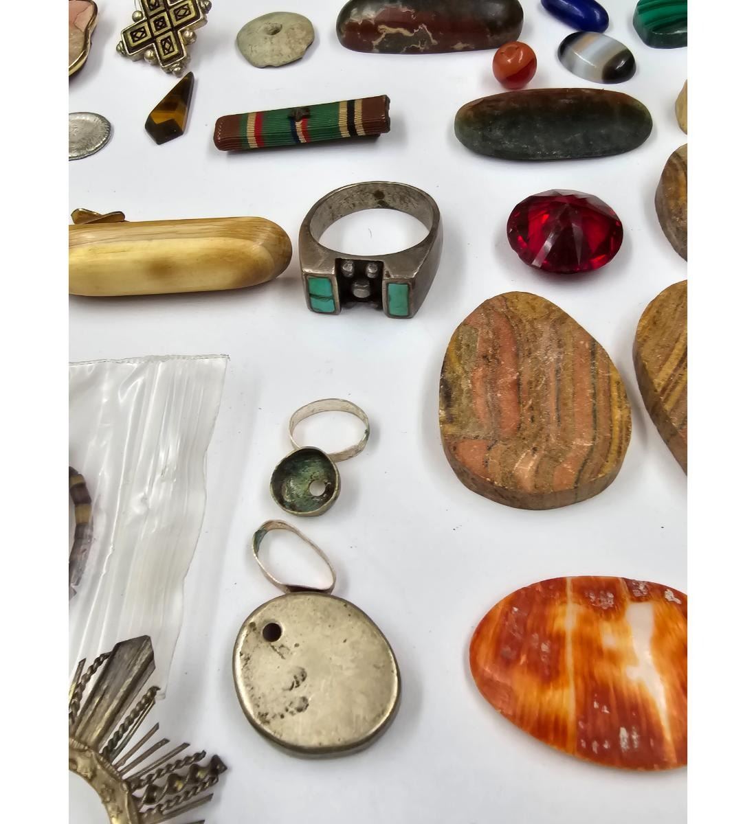 A Large Grouping Of Precious stones, Opal Malachite Jasper Obsidian Etc., See Pics, Various Sizes. Provenance: One Person Private Estate Central Florida.