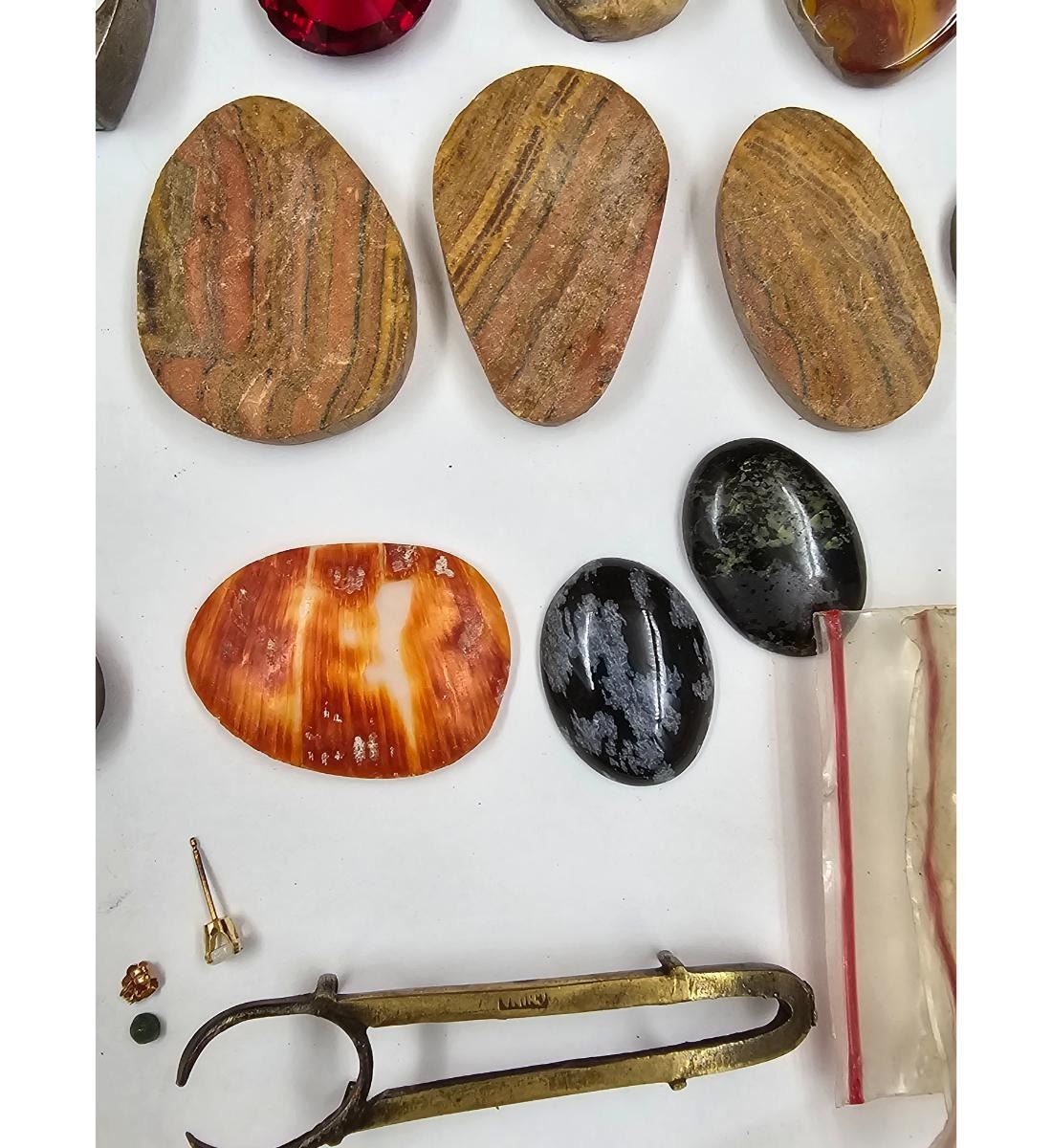 A Large Grouping Of Precious stones, Opal Malachite Jasper Obsidian Etc., See Pics