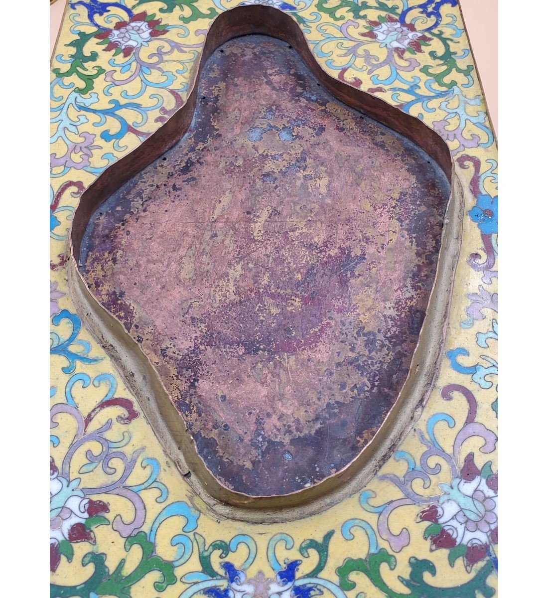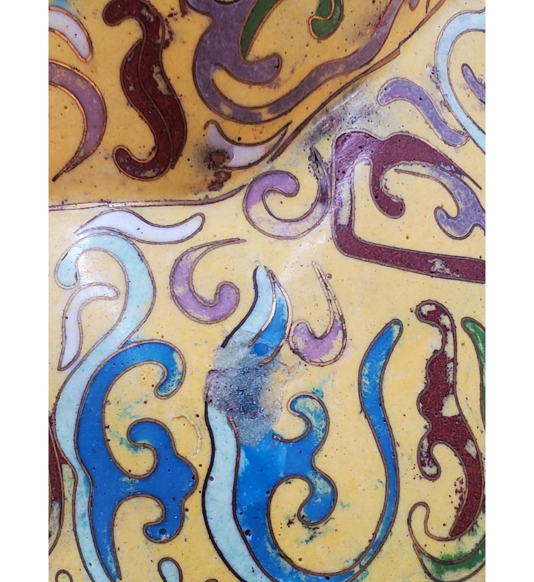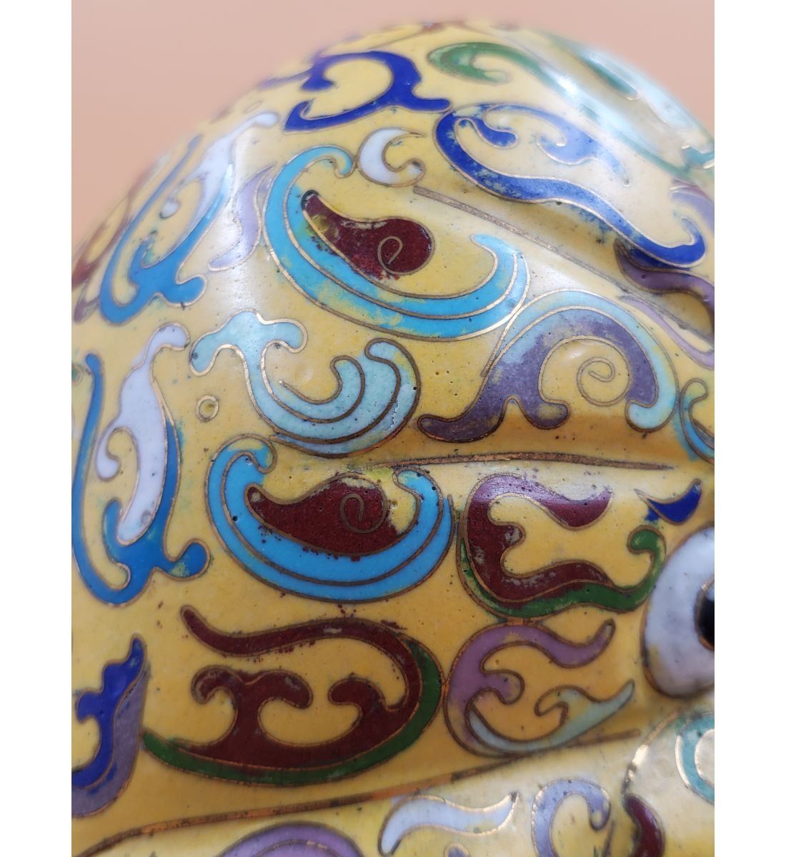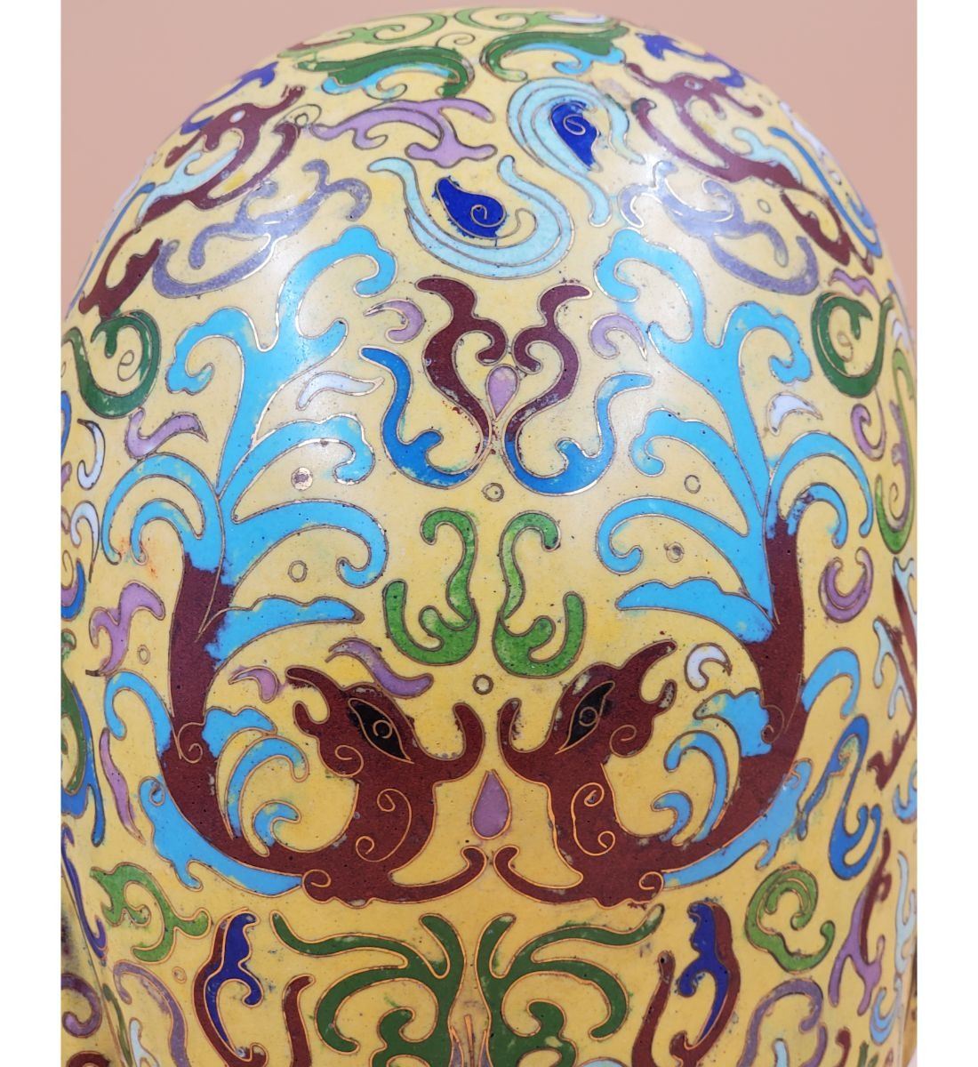 A Large Imperial Yellow Chinese Cloisonne Pekingese Sculpture. It stands at 16" and the base measures 8" x 12". Provenance: One Person Private Estate Central Florida.