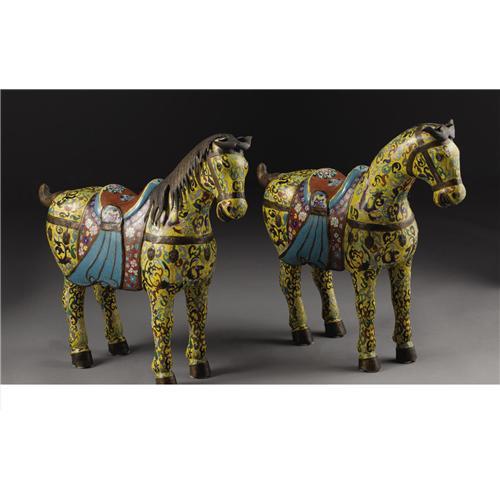 A Large Pair Of Chinese Cloisonne Enamel Horses