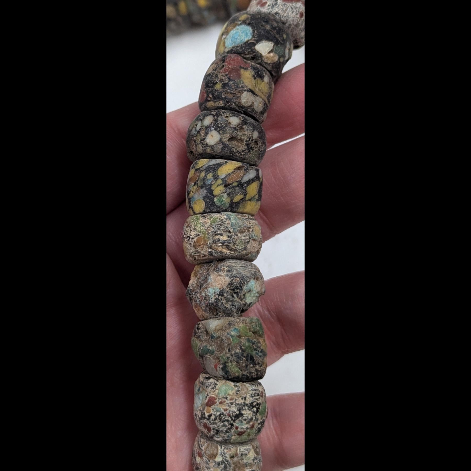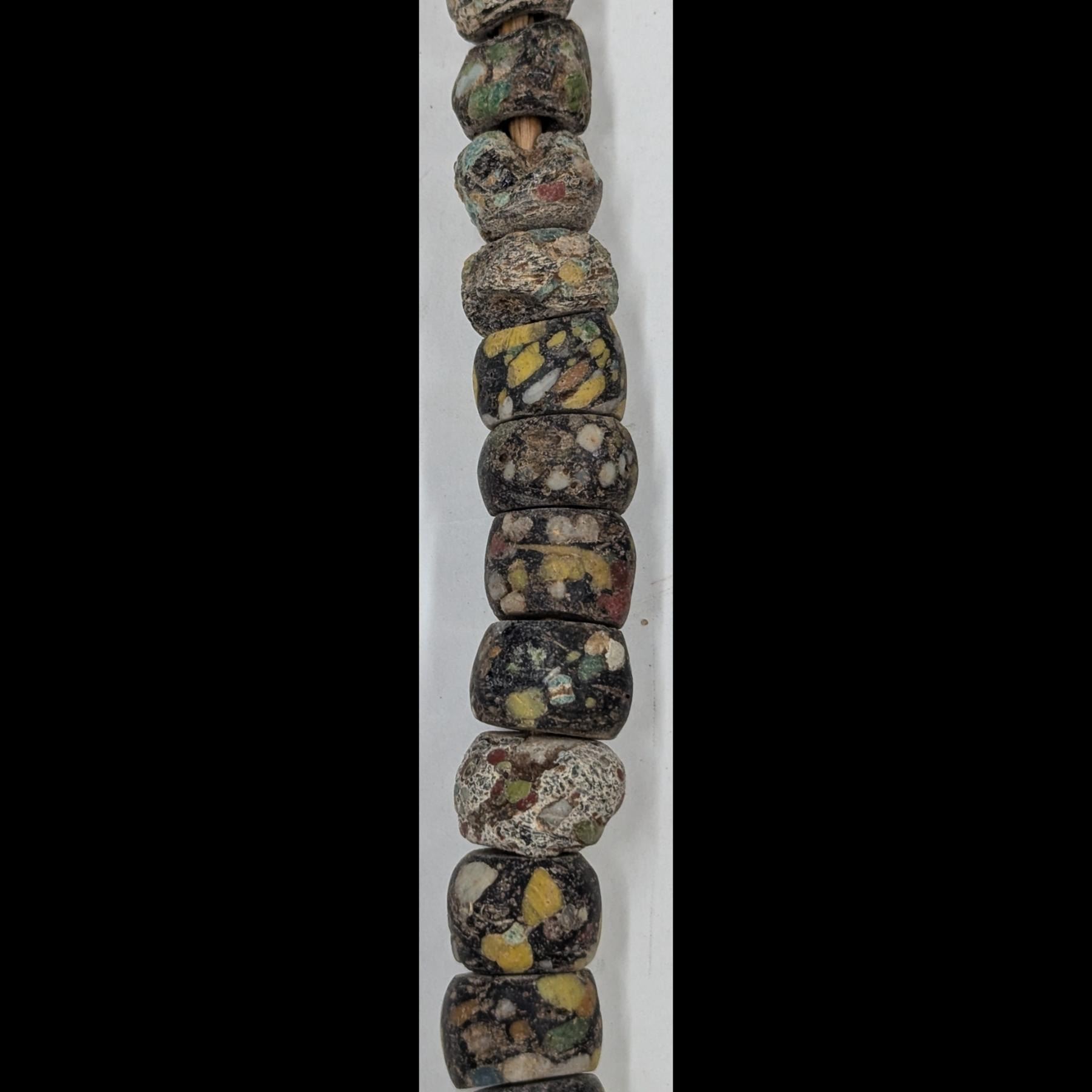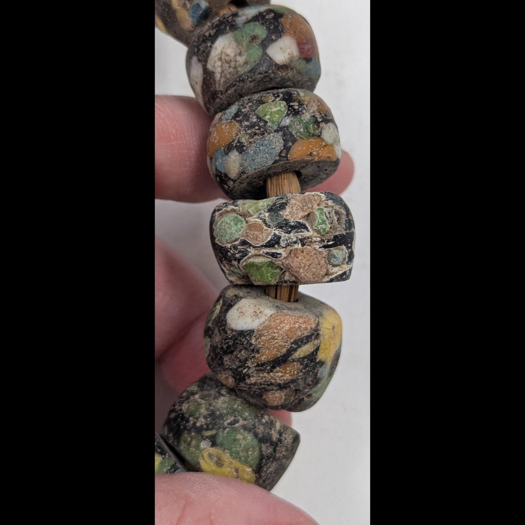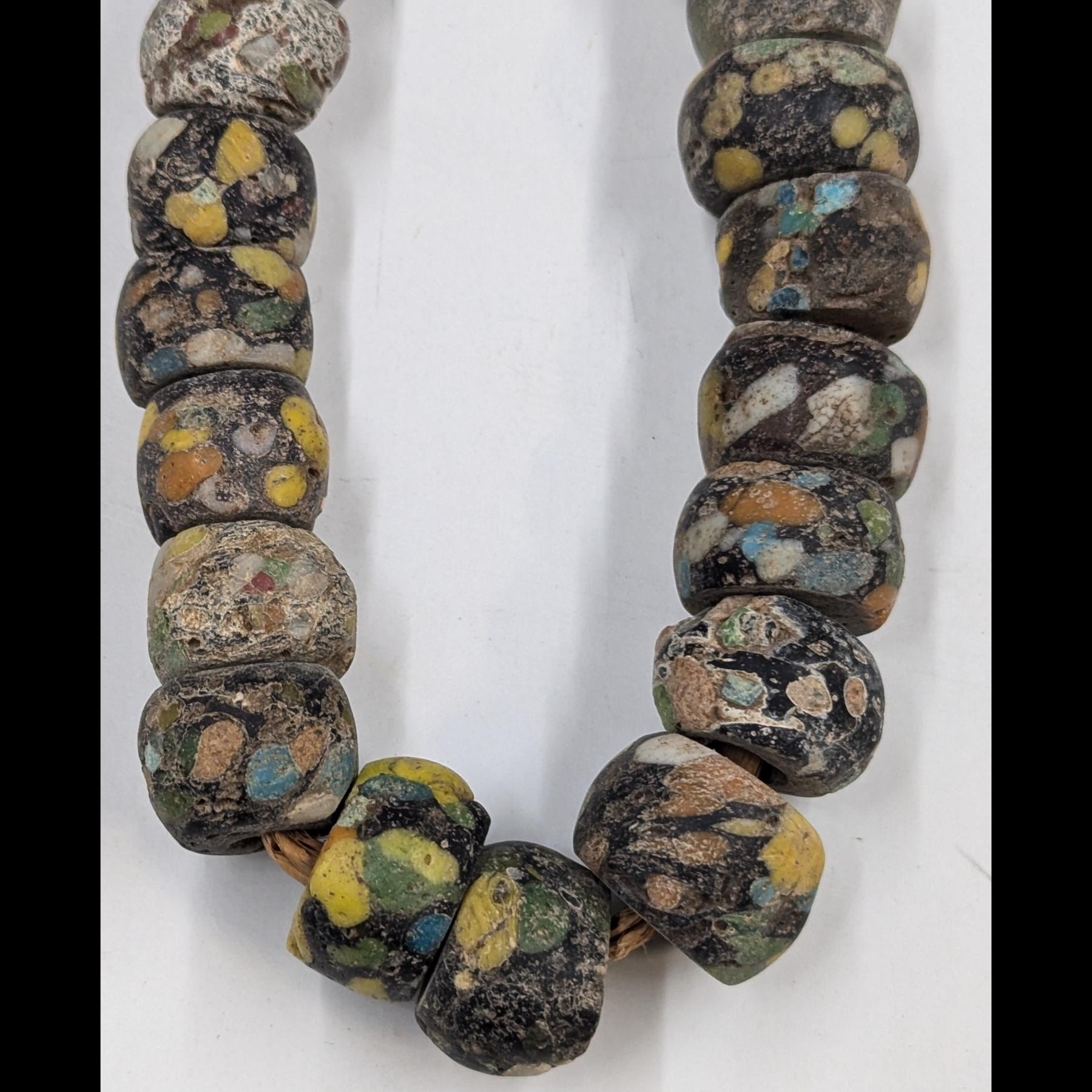 A Large String Of West African Venetian Glass "End-of-Day" Beads, 54 Beads Total