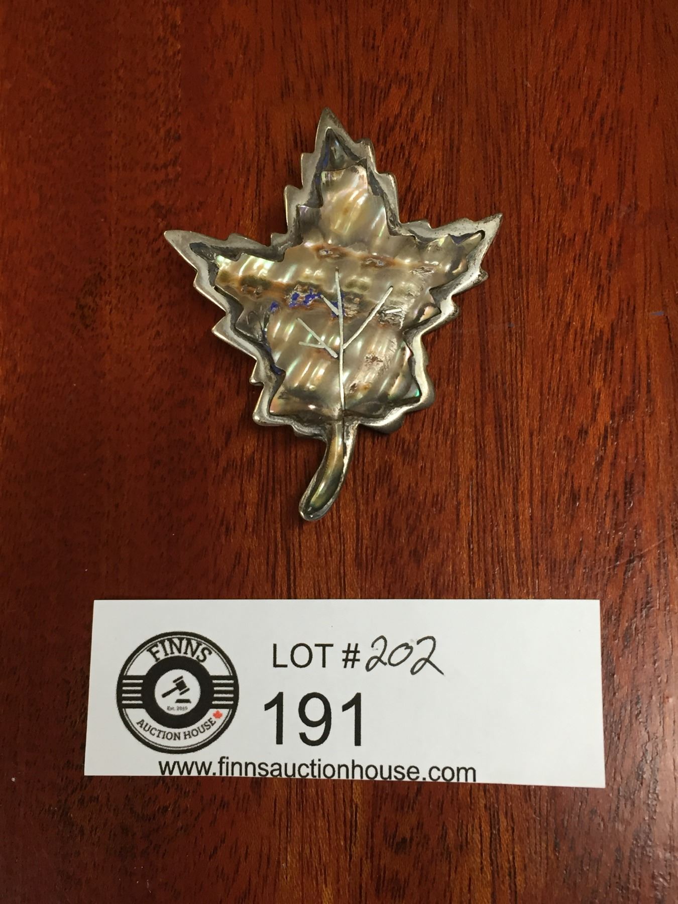 A Large and Heavy Shell and Sterling Silver Maple Leaf Brooch