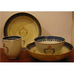A Late 18th Century Chinese Export Tea Bowl and Saucer, crested, and a matching cup and saucer, (...