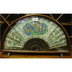 A Late 19th Century Cantonese Export Fan, decorated figures, on gilt decorated lacquered spars, framed £100 - 150