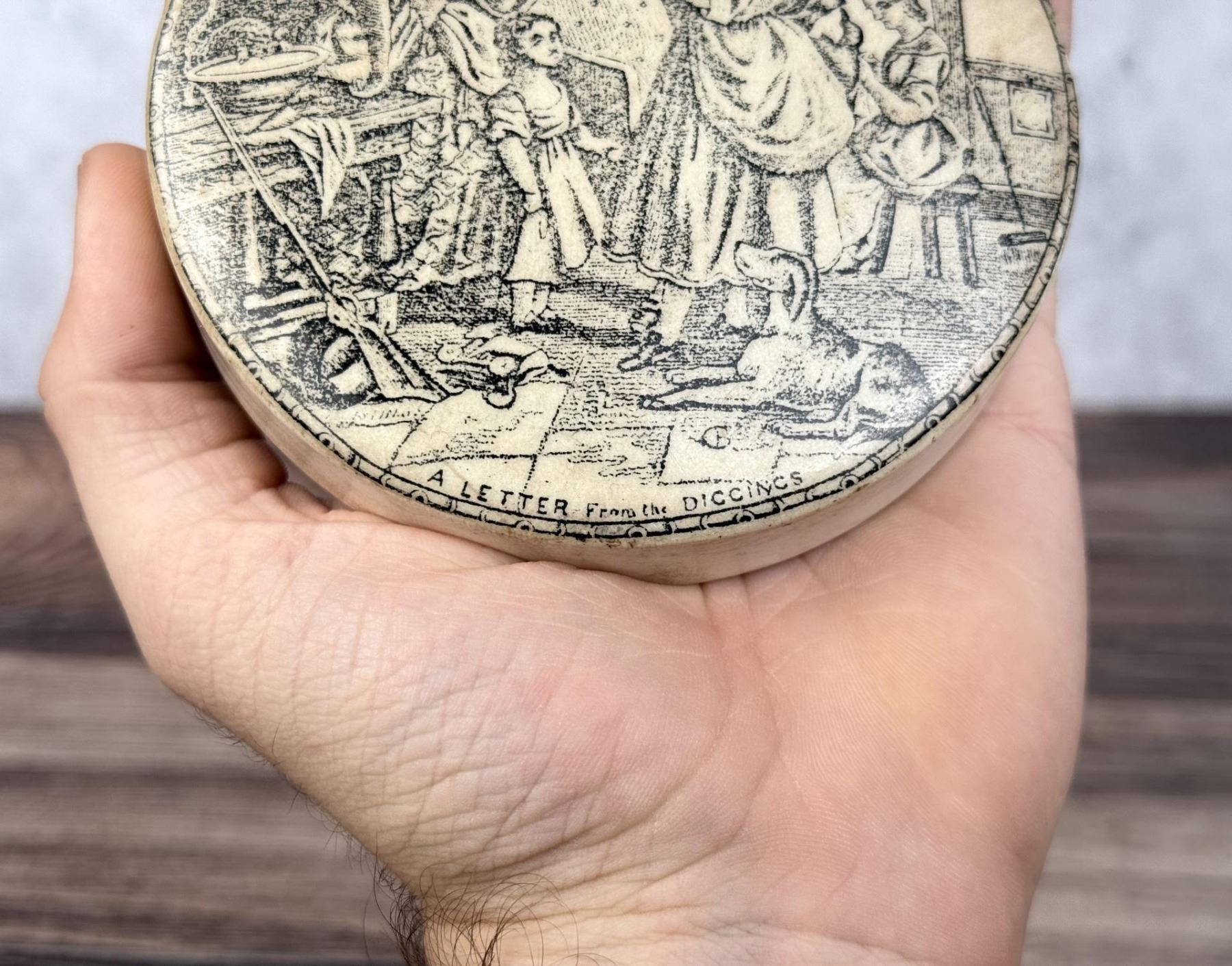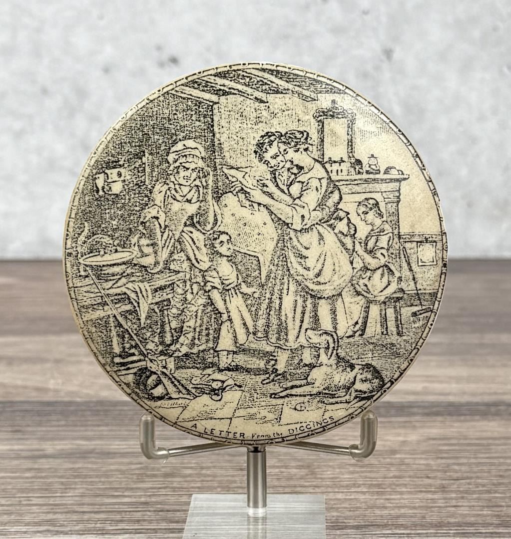 Prattware. 4 1/4" diameter, 7/8" tall.