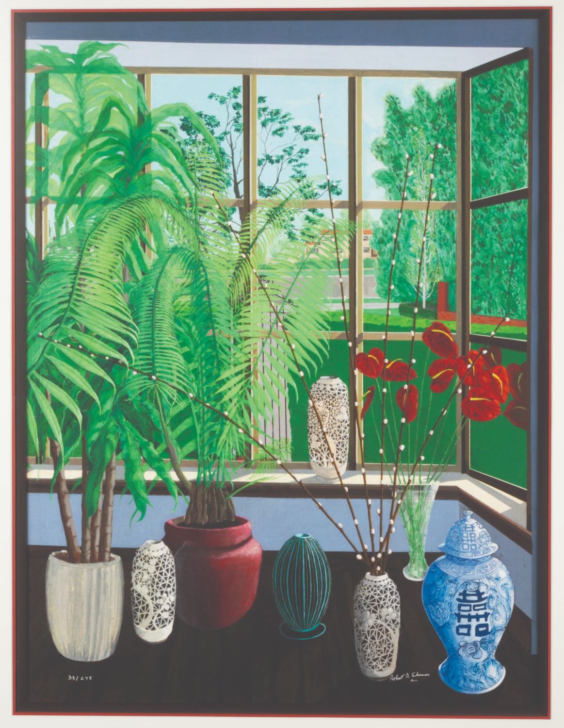 (Robert Sherman Art, 2002) A limited edition giclee print of a painting by Disney Legend composer Robert Sherman. Titled "From the Dining Room," the print is number 33 of 275 and comes with a COA signed by Sherman. Measuring 25.5" x 18.5" and presented in a beautiful 28.75" x 35" frame, the print is in fine condition.