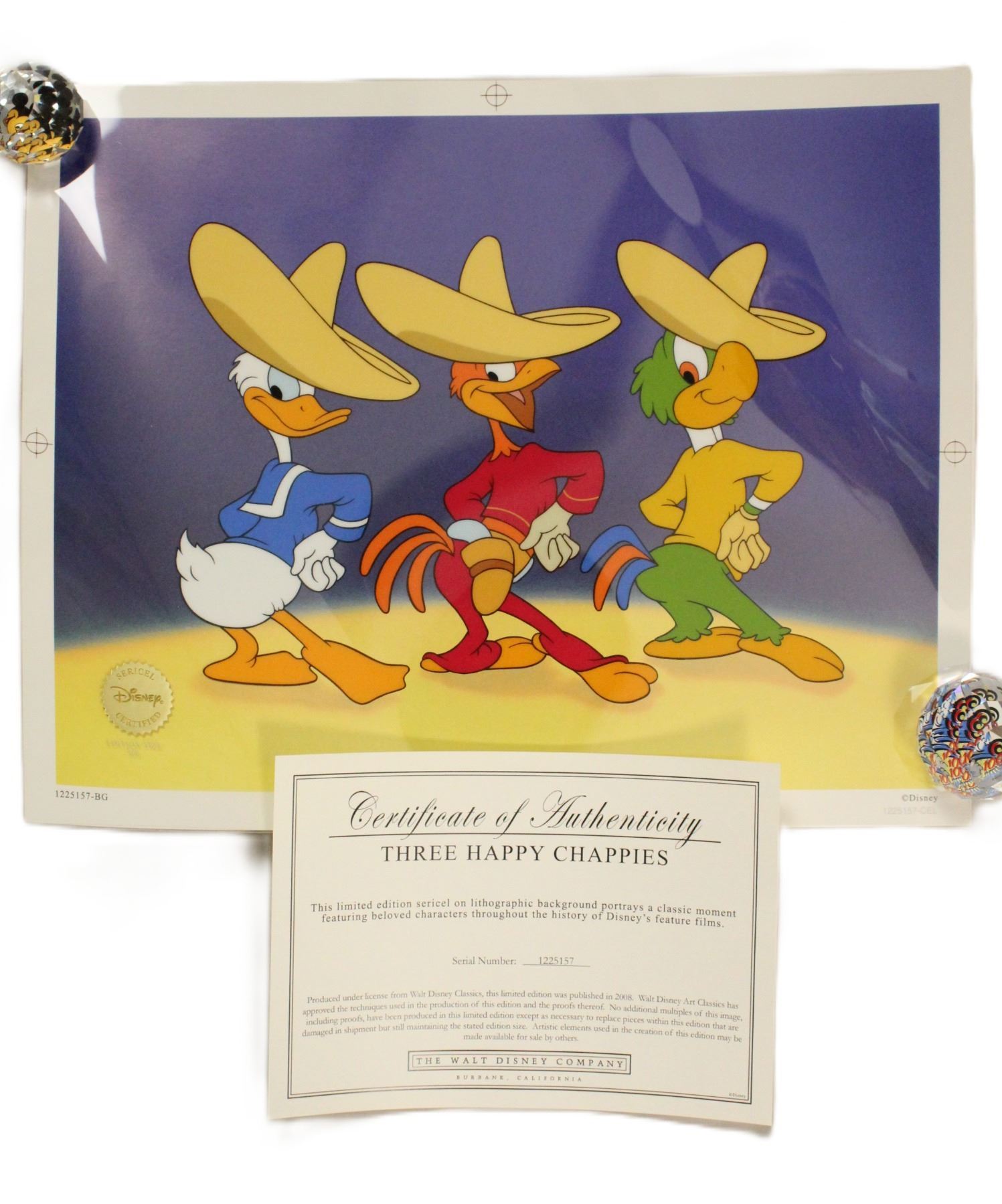 Produced in 2008 by the Walt Disney Company, this limited edition Sericel on lithographic background is in excellent condition. The edition is limited to 500 pieces and features the Disney certified sticker in the lower left corner. The unframed cell and background measures 11.5" by 14.5" in size.
