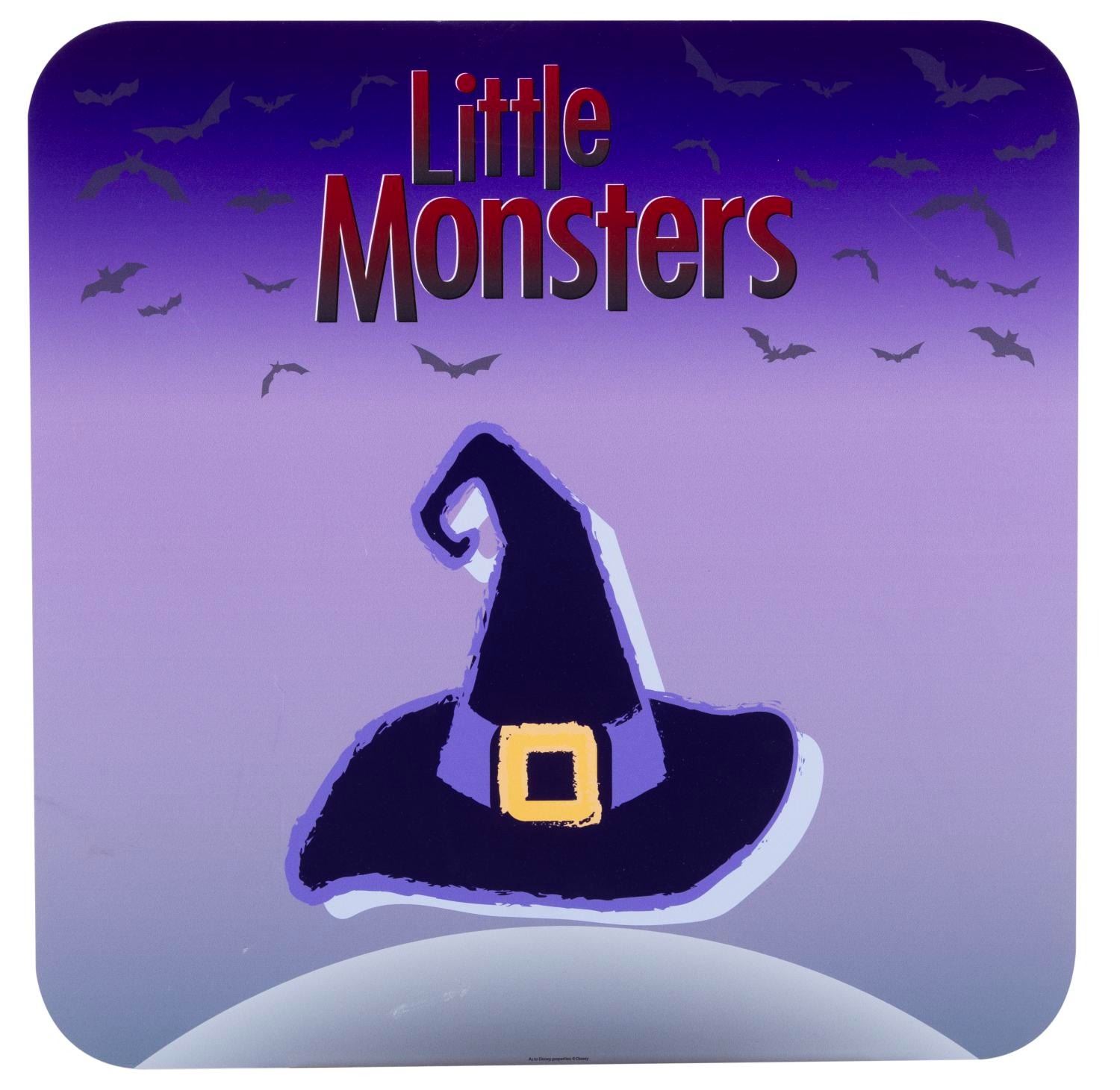 (Disney California Adventure, 2002–08) A sign displayed at the Little Monsters Halloween event exclusive to Cast Members and their families. The event was originally called "Little Monsters on Main Street" before it relocated to Disney California Adventure in 2002. Measuring 20" x 20", the sign is in good condition with light soiling, scuffing, scratches, and velcro on the reverse for mounting.