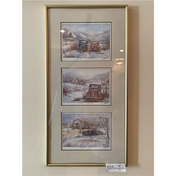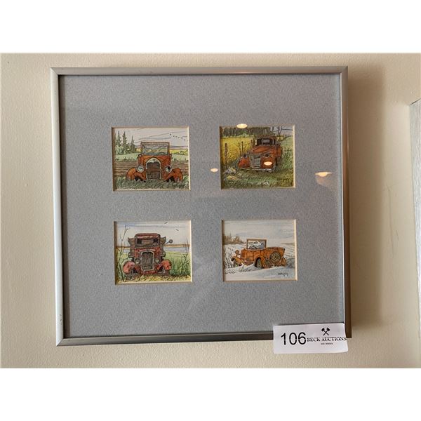 4 Small Car Paintings in 1 Frame by D.E. Ripley