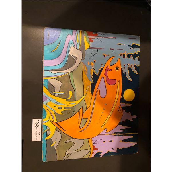 Unframed Salmon Spawning Painting by D.E. Ripley