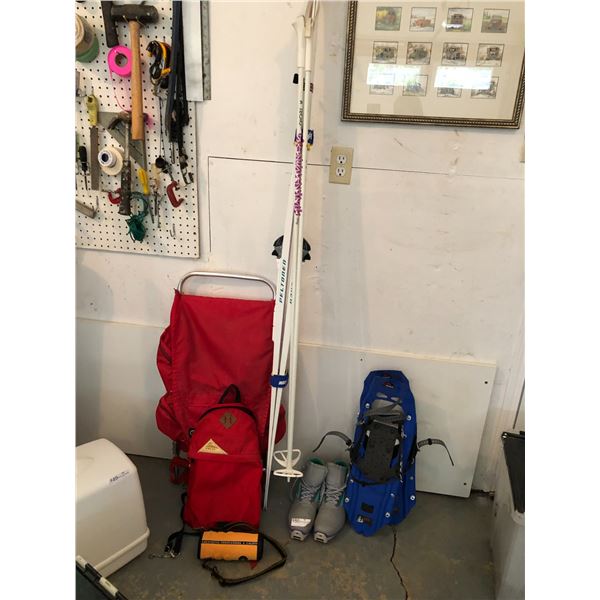 Cross Country Skis with poles, Boots, Snowshoes & Hiking Bag