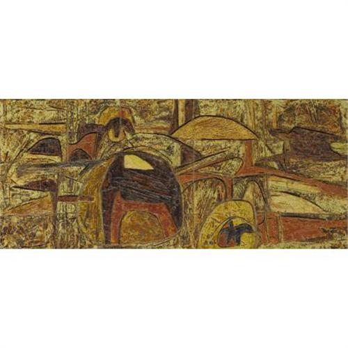 <B>A Contemporary Abstract in Low Relief<BR></B></I>Look Frenk, Holland<BR>Twentieth Century<BR>Titled #10, glazed ceramic primarily in yellow and brown<BR>19.7 inches high x 46.2 inches wide x 1.7 inches deep<BR><BR><b>Shipping:</b> Requires 3rd Party Shipping (<a target="_blank" href="http://www.heritageauctions.com/common/shipping.php">view shipping information</a>)