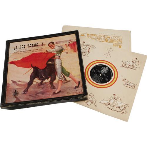 <B>"A Los Toros...!" Bullfighting Box Set.</B></I> A copy of <I>A Los Toros...! Documentary Study of the Bull and the Bullfighting</B></I> by Ramon Sanchez Aguilar, with English translation by Charles David Lee (1958), with LP and slipcase. The book and record are in Excellent condition, and the slipcase is in Fine condition with moderate wear. <I>From the Ava Gardner Estate.</B></I><BR><BR><b>Shipping:</b> Recording (<a target="_blank" href="http://www.heritageauctions.com/common/shipping.php">view shipping information</a>)