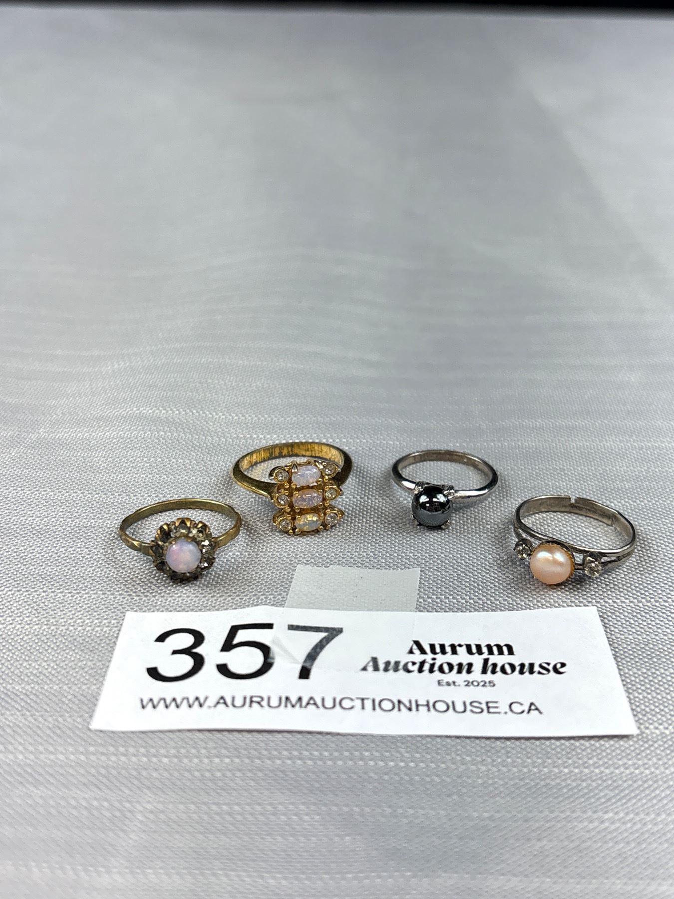 A Lot of 4 Opal + Pearl Look Antique Rings