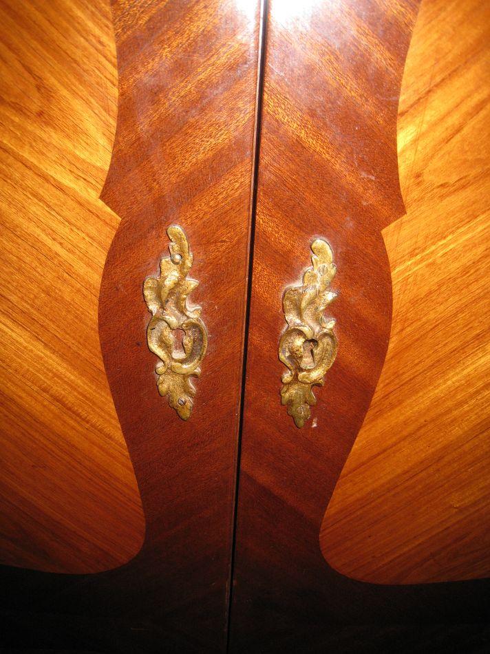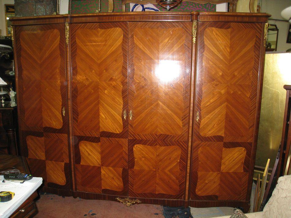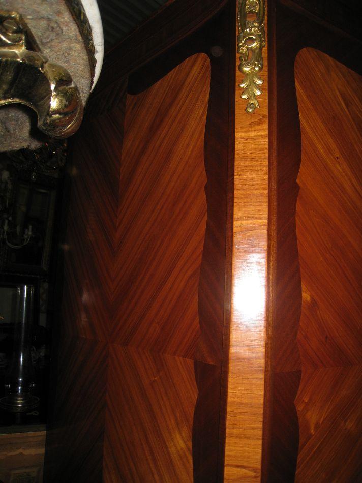 A Louis XV Style Fruitwood Parquetry Inlay Armoire.