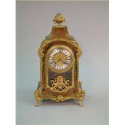A Louis XV style boullework mantel clock, with gilt brass mounts, cast brass dial with enamelled numerals, movement striking on a bell 14.5in. £400-600