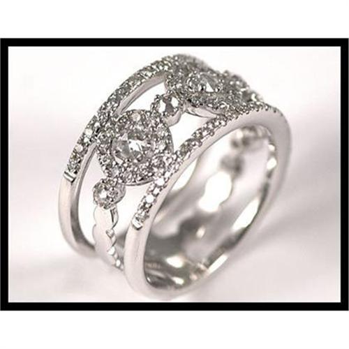 This beautiful lady's 14K white gold filigree design diamond band consists of 7 rose cut diamonds and 74 full cut diamonds that have an estimated total weight of 1.20 carats. This sized 5 3/4 diamond band has nice, clean, and sparkle diamonds on.