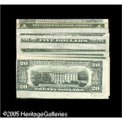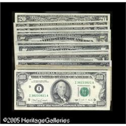 <B>A Lovely Group of Shifted First Printings, Including:</B></I><BR>Fr. 1601* $1 1928A Silver Certificate. Crisp Uncirculated.<BR>Fr. 1613 $1 1935D Silver Certificate. XF<BR>Fr. 1613 $1 1935D Silver Certificate. VF<BR>Fr. 1613 $1 1935D Silver Certificate. Fine<BR>Fr. 1706 $5 1953 Silver Certificate. XF, mount residue<BR>Fr. 1962-A $5 1950A Federal Reserve Bank Note. Choice CU<BR>Fr. 1962-D $5 1950A Federal Reserve Bank Note. Gem CU<BR>Fr. 1962-K $5 1950A Federal Reserve Bank Note. XF<BR>Fr. 2011-C $10 1950A Federal Reserve Bank Note. AU<BR>Fr. 2011-D $10 1950A Federal Reserve Bank Note. AU<BR>Fr. 2011-H $10 1950A Federal Reserve Bank Note. VF<BR>Fr. 2077-G $20 1990 Federal Reserve Bank Note. XF<BR>Fr. 2173-I $100 1990 Federal Reserve Bank Note. AU.<BR>The shifting on each of these pieces reveals a portion of the next note on the sheet.<BR> 13 notes Lot:15492