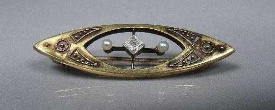 A Low kt Yellow Gold Diamond and Pearl Brooch.