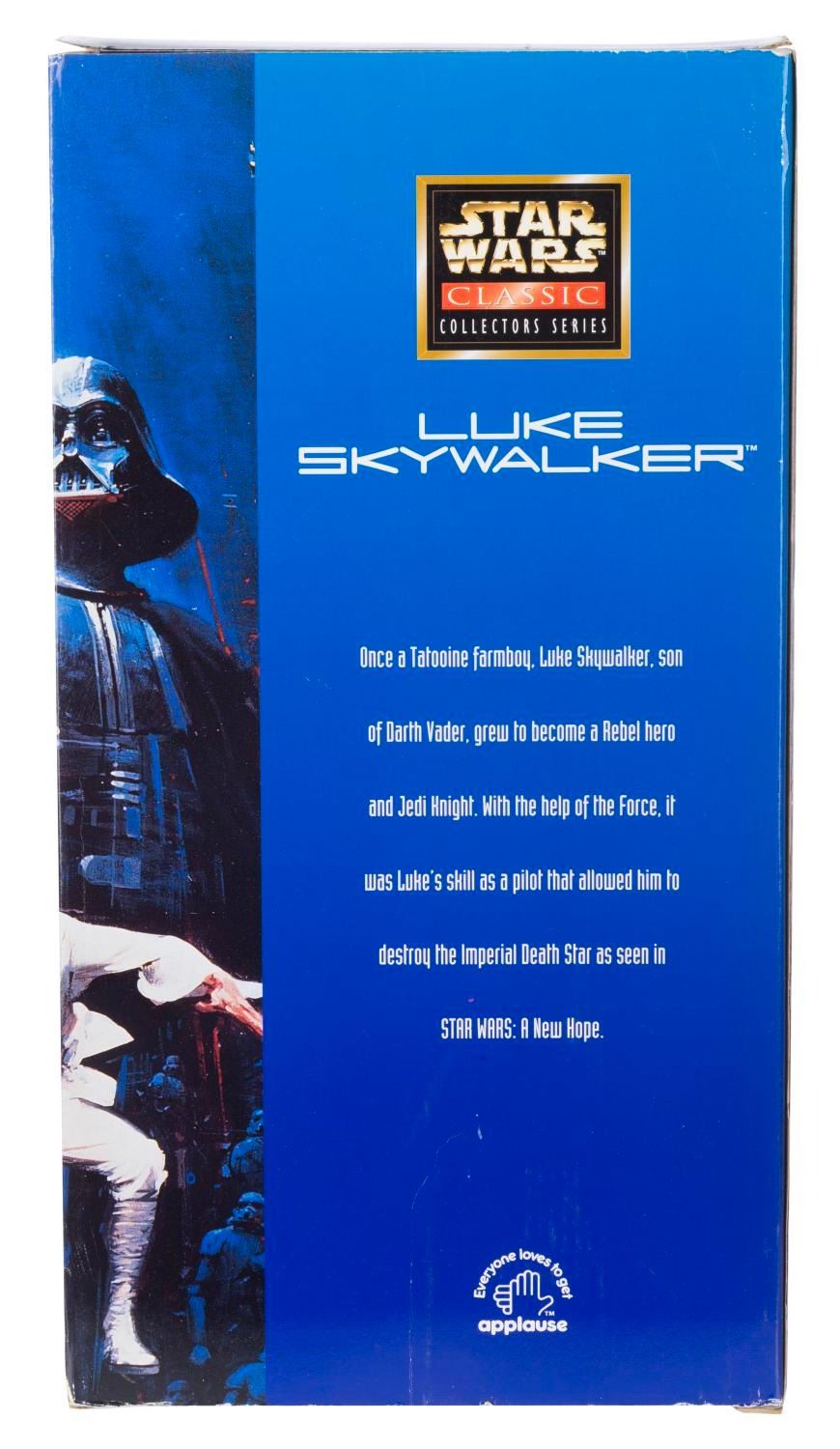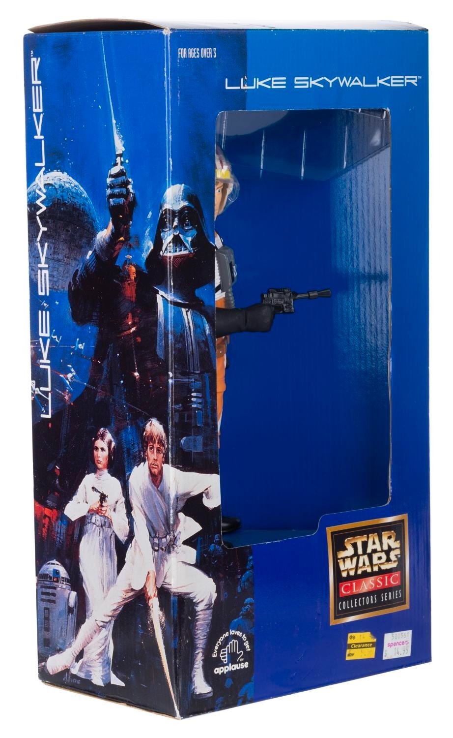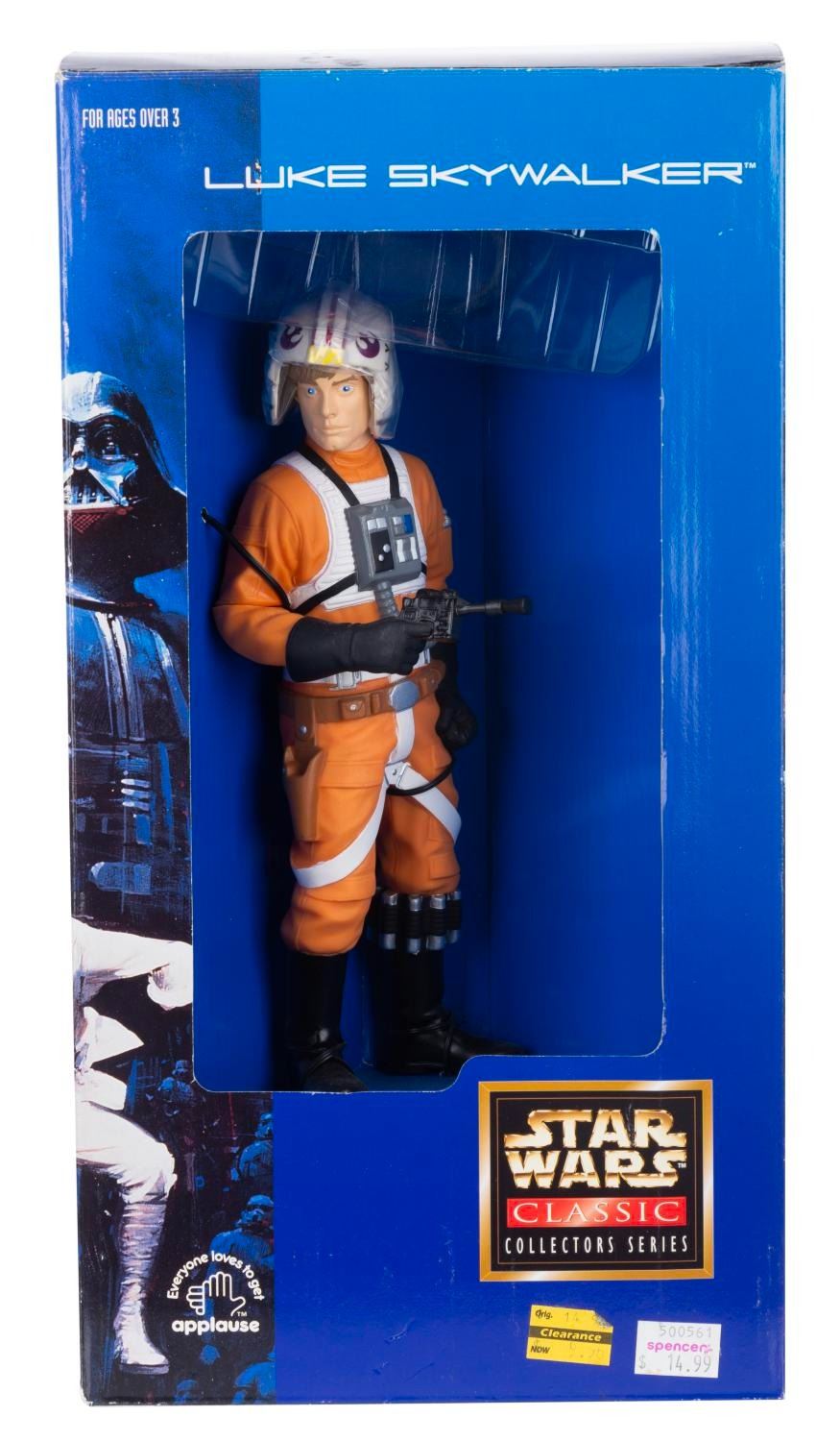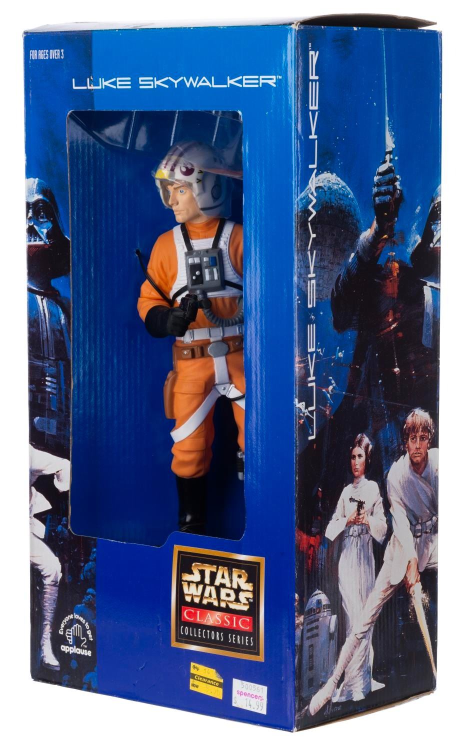 (Applause, 1997) A vinyl figure of Luke Skywalker in his rebel pilot outfit, with removable helmet. Measuring 9.5” tall the figure is in fine condition still in the original box.
