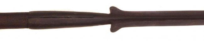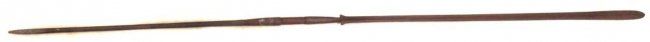 With characteristic forged steel blade and butt and wooden grip. First half of the 20th century.Worn overall.Overall length 194 cm.