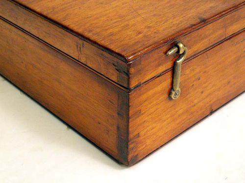 English, the lid opens to reveal a well fitted with robin`s egg blue paper. 4 1/4"h x 14"w x 9 3/4"d.
