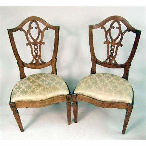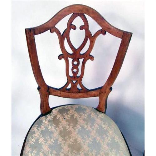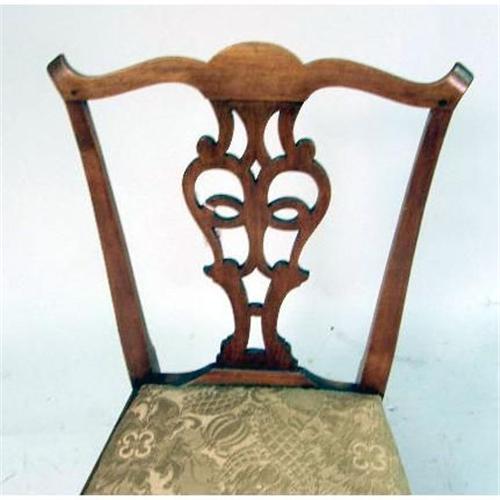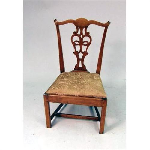 A MAHOGANY CHIPPENDALE SIDE CHAIR<BR><BR>With serpentine crest, pierced cut vase-form splat, slip seat, straight square legs. Together with a pair of walnut Southern European Provincial shield back side chairs, cut down, and a Louis XV Provincial open back side chair, urn form splat 4 pieces