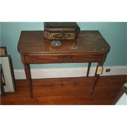 A MAHOGANY FOLD-OVER TOP TEA TABLE, EARLY 19th CENTURY, with rounded corners, on ring turned tapering legs