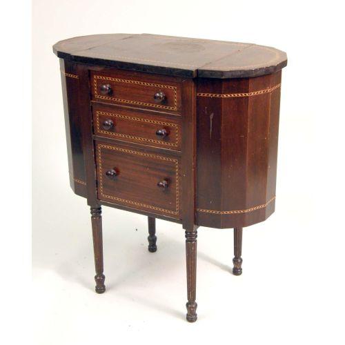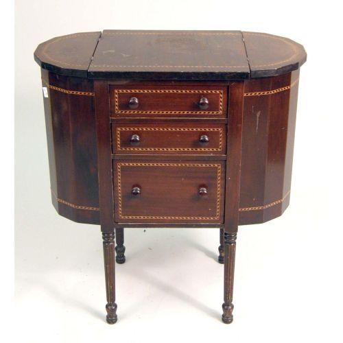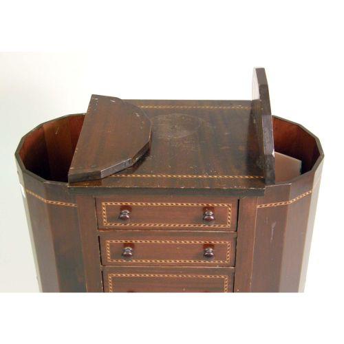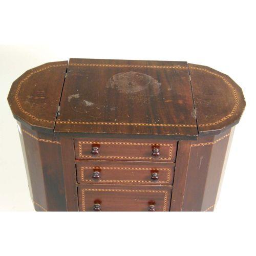 A MAHOGANY PARQUETRY-INLAID SEWING CABINET<BR><BR>29 1/2"h x 27"w x 14"d