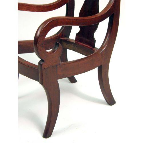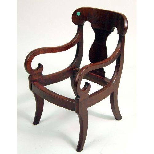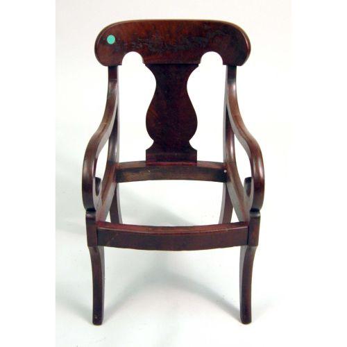A MAHOGANY QUEEN ANNE CHILD`S CHAIR<BR><BR>the seat rail stamped "II". Together with a small mahogany armchair with needlepoint seat cover. Child`s chair 23" high, armchair 30" high. 2 pieces.