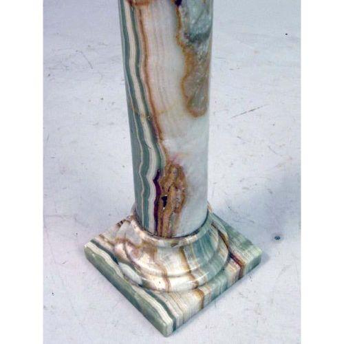 A MARBLE PEDESTAL<BR><BR>With green and amber color striations, repairs, chips, and losses, 40 1/2"h