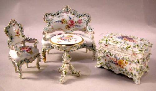 A MEISSEN STYLE PORCELAIN SEATING SUITE;