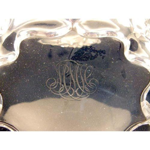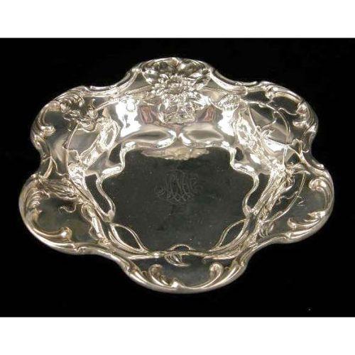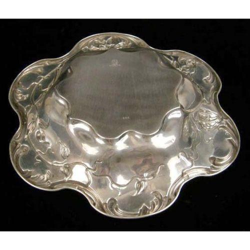 A MERIDEN STERLING SILVER SHAPED CIRCULAR BOWL<BR><BR>Scalloped rim, centered monogram, floral, leaf and vine decoration, 9"diameter, weight apx. 6 T.O.