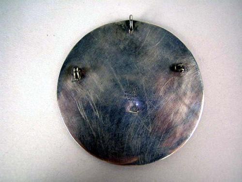 A METALES CASADOS JMJ LOGO MEXICAN HALLMARK STERLING SILVER PENDANT PIN In sundial design of Aztec calendar (missing pin)