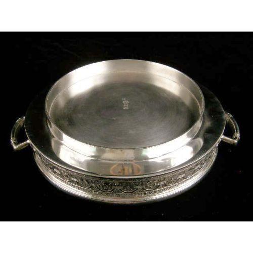 A MIDDLETOWN QUADRUPLE SILVER PLATED CIRCULAR COVERED SERVING DISH<BR><BR>11"diameter