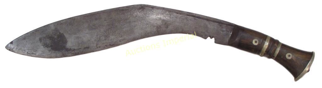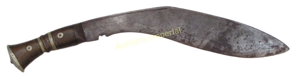 Heavy steel blade with wood grip. Worn. Early 20th century. Overall length 42.8 cm.