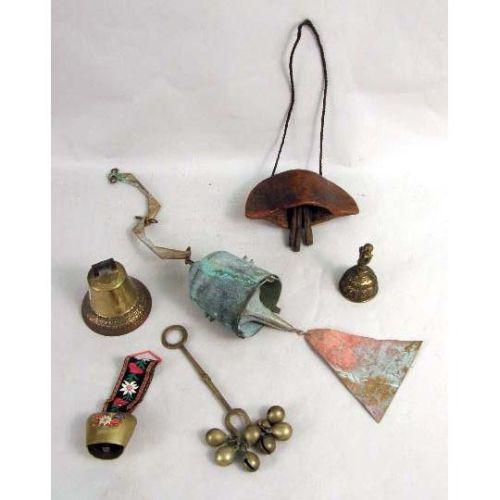 A MISCELLANEOUS GROUP OF BELLS<BR><BR>comprising a carved wooden elephant bell