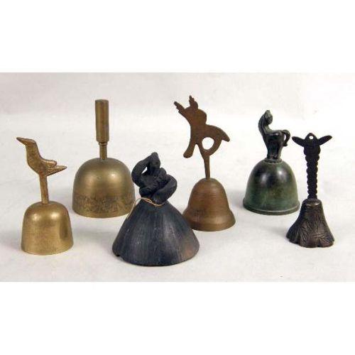 A MISCELLANEOUS GROUP OF BELLS<BR><BR>comprising two figural brass examples, one bronze