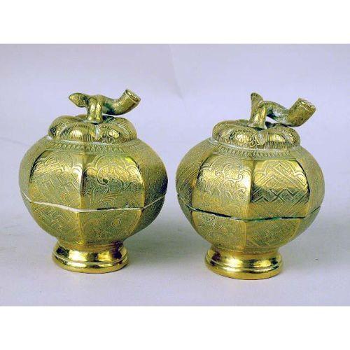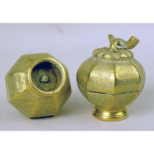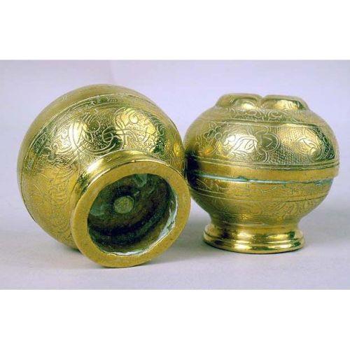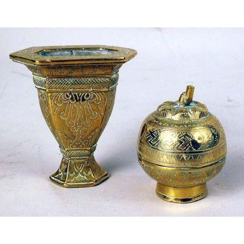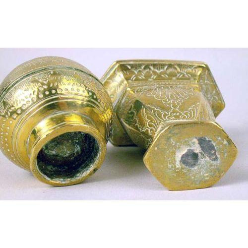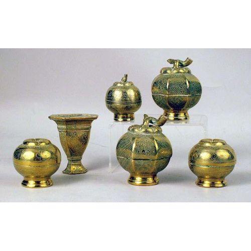 A MISCELLANEOUS GROUP OF BRASS TABLE ARTICLES<BR><BR>6 pieces, Tallest: 3 1/2"h