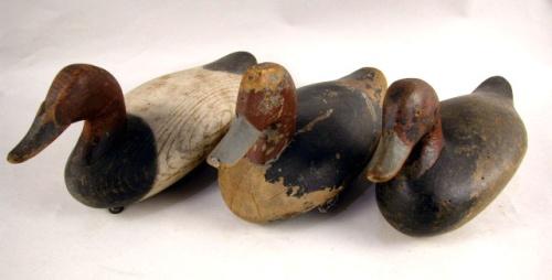 A MISCELLANEOUS GROUP OF CARVED AND PAINTED DECOYS; Comprising two Redheads and a Canvasback, Chesapeake-Area, Maryland, paint worn