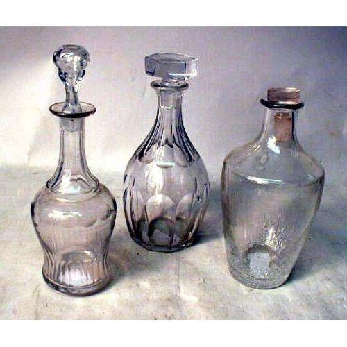 A MISCELLANEOUS GROUP OF COLORLESS GLASS<BR><BR>Comprising a St. Louis decanter, drinking glasses, plates, decanters, and a vase