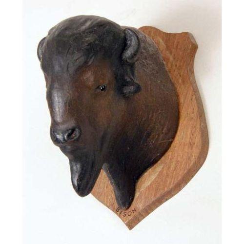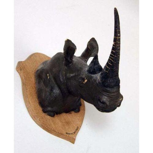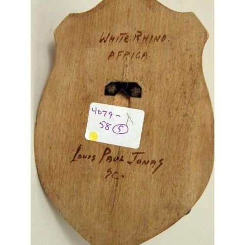 A MISCELLANEOUS GROUP OF COMPOSITION HANDPAINTED ANIMAL HEADS<BR><BR>Mounted on a wall plaques, bears signature "Louis Paul Jonas," comprising, an elephant, two rhinos, a bison, and an ox, largest: 12"l, 5 pieces