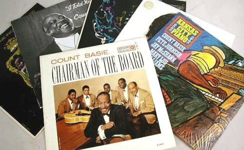 A MISCELLANEOUS GROUP OF COUNT BASIE RECORDS Comprising the following titles: "Chairman of the Board", "Basie/Eckstine Incorporated", "Kansas City Piano 1936-1941", "Joe Williams/Count Basie Memories Ad-Lib, I Told You So", and "The Songs of Bessie Smith, Teresa Brewer, Count Basie and Thad Jones", 6 pieces