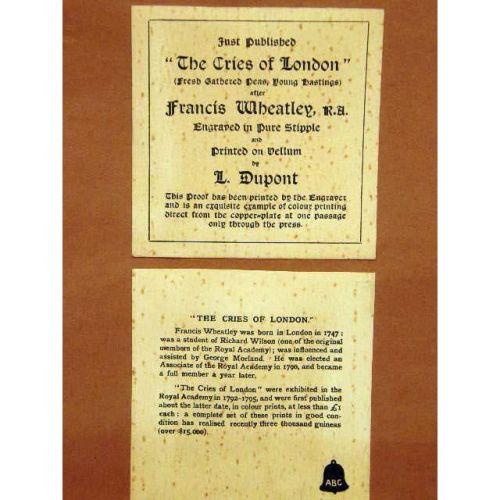 A MISCELLANEOUS GROUP OF FOUR FRAMED DECORATIVE PRINTS<BR><BR>Titled "The Cries of London," by France Wheatley, 11"h x 9"w
