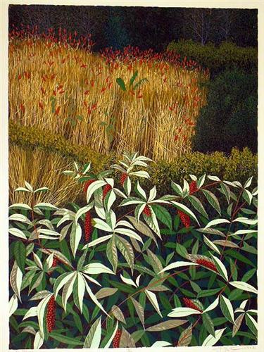 Depicting landscape scenes, one bears signature l.r. illegibly, #7/100, a second bears signature l.r. Franco Namorelli (?), a third bears signature l.r. Jeramey King, and a fourth bears signature l.r. illegibly, and is titled "Wild Grape," Sightline from